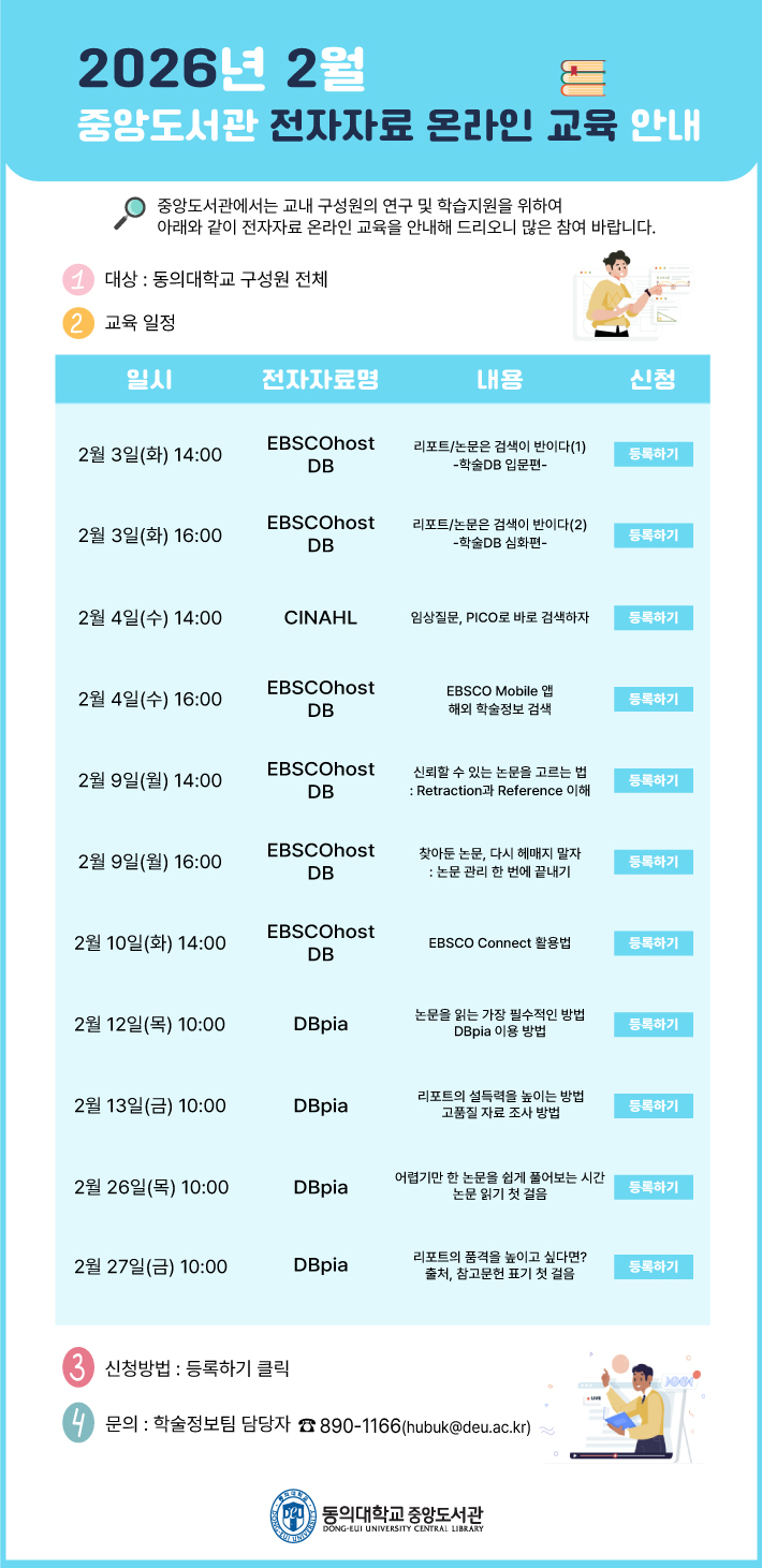 [2026년 2월 중앙도서관 전자자료 온라인 교육 안내]